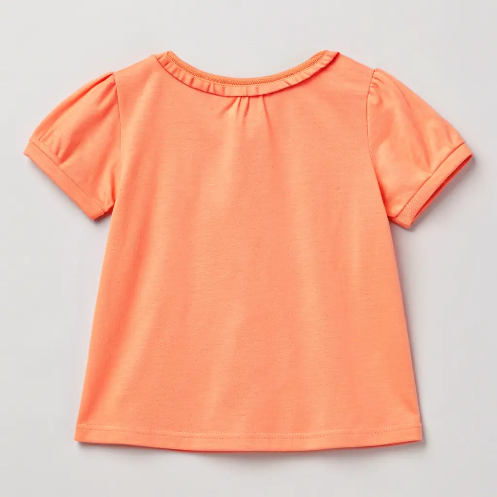 Ten uroczy letni top ma żywy kwiatowy wzór, idealny na ciepłą pogodę. Wykonany z lekkiej, oddychającej tkaniny, zapewnia komfort podczas aktywności na świeżym powietrzu. Top ma luźny krój z falbankami na rękawach i okrągły dekolt, dodając odrobinę uroku. Jego radosny wygląd sprawia, że idealnie nadaje się na niezobowiązujące wyjścia lub spotkania rodzinne.